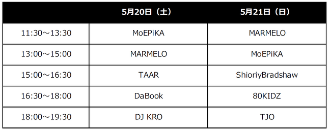 -TAAR氏や80KIDZ氏らが登場するDJブースも展開。