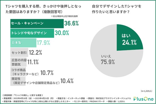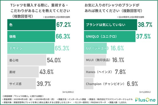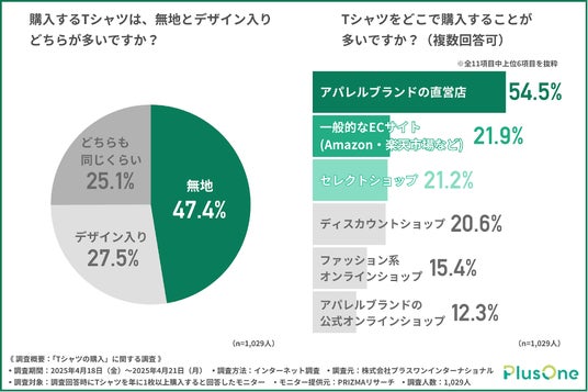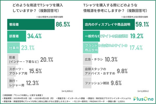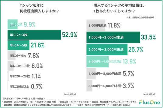 オリジナルウェア・グッズの製造販売を行う株式会社プラスワンインターナショナル(本社:香川県高松市、代表取締役:新開強)は、Tシャツを年に1枚以上購入する1,029人を対象に、「Tシャツの購入」に関する実態調査を実施しました。