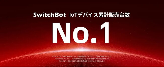 SwitchBotは、世界100以上の国や地域に向けIoTスマートホームデバイスの企画、製造、販売を行うスマートホームブランドです。従来の家具や家電を後付けでスマート化できる便利性や自由に組み合わせられる拡張性の高さが評価され、日本国内のユーザーは100万世帯超え、販売累計台数は500万台を突破しました。 また、おかげさまで弊社の「SwitchBotボット」「SwitchBotプラグミニ」「SwitchBotカーテン」「SwitchBotハブミニ」「SwitchBotロック」の計5製品が「IoTデバイスNo.1」を獲得。さらに、SwitchBotプラグミニ、SwitchBotカーテン、SwitchBotハブミニ、SwitchBotロックがそれぞれ「IoTデバイス スマートプラグ 売上No.1」「IoTデバイス カーテン 売上No.1」「IoTデバイス スマートリモコン 売上No.1」「IoTデバイス スマートロック 売上No.1」を獲得いたしました。今後も手軽にスマートホームが実現できるクリエイティブな製品を提供できるよう、先端技術の開発・改善に努めてまいります。