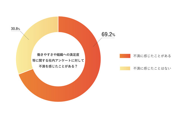 回答経験があると回答した46.3%の人に対し、「その社内アンケートに対して不満を感じたことがあるか」という質問を実施したところ、69.2%の人が、不満を感じたことがあると回答しました。