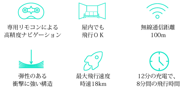 たった12分の充電ですぐに飛行可能なので、すぐに遊びたいときやアウトドアシーズンに活躍すること間違いなしです。上手くなったら、部屋の中でも優雅に滑空!家具の周りを鋭角に旋回することができます。