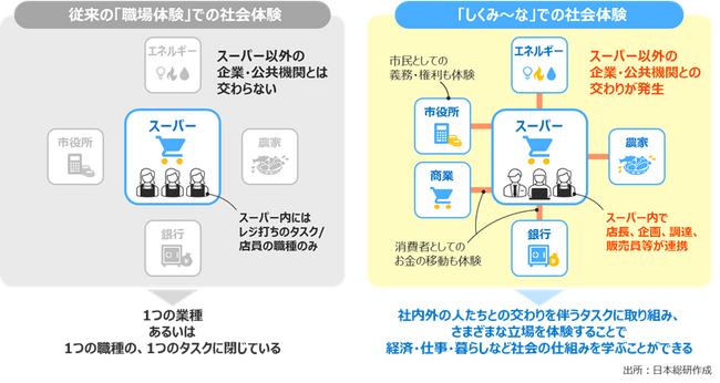 株式会社日本総合研究所(本社:東京都品川区、代表取締役社長:谷崎勝教、以下「日本総研」)は、一般社団法人まちの遊民社(主たる事務所:静岡県富士市、代表理事:篠原千津美、以下「まちの遊民社」)が計画している、静岡県富士市内の小中学校での新たなキャリア教育プログラムの実施について支援を行うことになりました。また、日本総研の独自開発による社会体験カリキュラム「子ども社会体験科 しくみ~な」(以下「しくみ~な」)のノウハウを無償提供し、まちの遊民社のキャリア教育プログラムの構築を支援します。