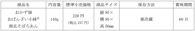今回新たに発売する「おかず畑 おばんざい小鉢(R) 南瓜そぼろあん」は、下処理に時間がかかりがちな南瓜と、家庭で調理しづらいあんかけメニューを、自宅でも手軽にお楽しみいただけるよう、あんかけおかず商品の第2弾として発売いたします。