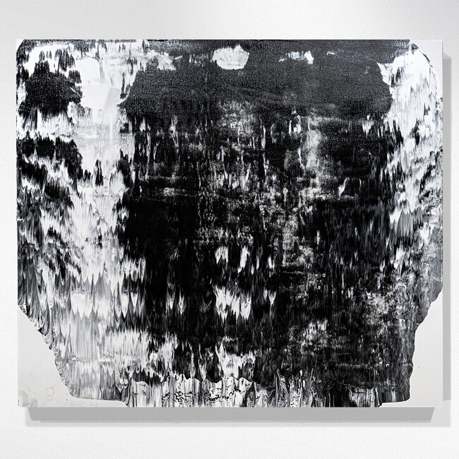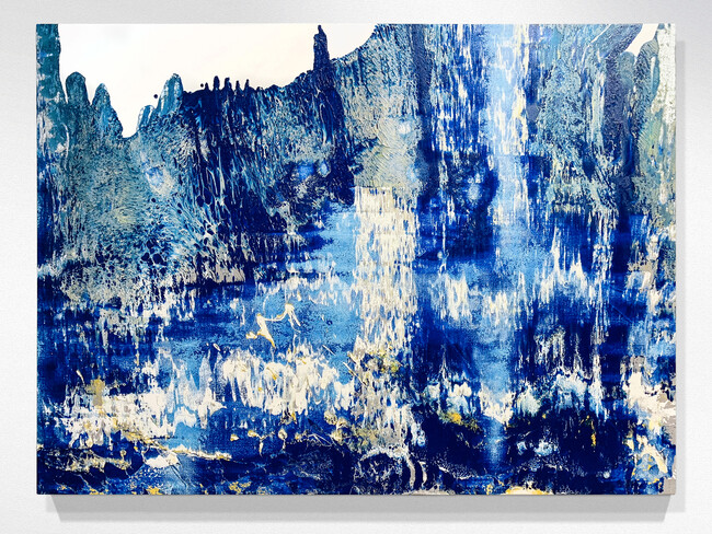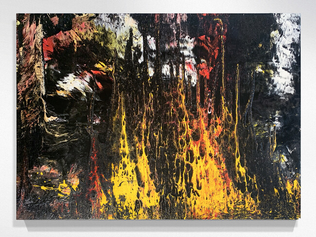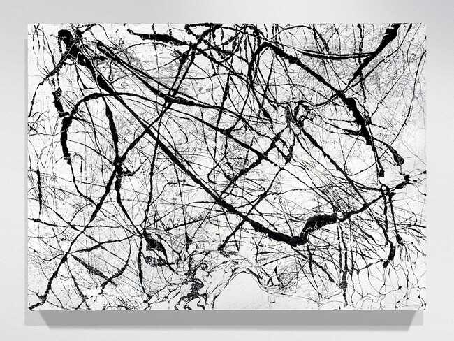 本展で主に展示される『One』シリーズは、一つの行為の反動エネルギーをキャンバスに残そうと試みたシリーズですが、「自由反動」同様、制作する藤元の人的要因が計算できないため、制作前から作品の完成イメージを把握することはできません。それはまた不確実性に満ちた現代社会のメタファーであるとも言えるでしょう。