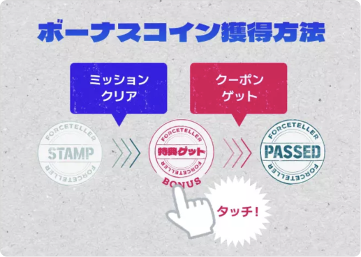 各ミッションをクリアしスタンプを集めることで、ボーナスコインをGETすることができます!