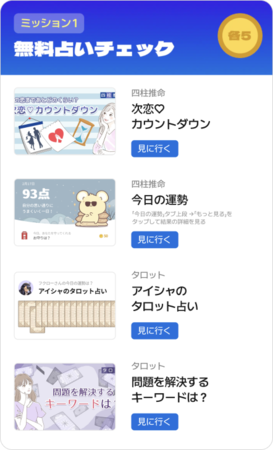 <ミッション1:無料運勢4つチェック(指定あり)>