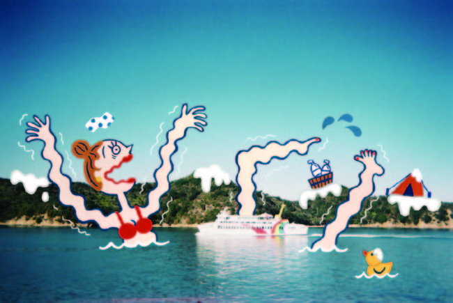 大好きな小豆島へ向かうフェリーからインスタントカメラで撮影した写真の上に描いています。この日もいい風が吹くお天気だったので、自然の中でひんやり楽しんでもらえると嬉しいです!