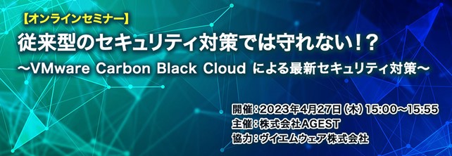 本セミナーでは、ヴイエムウェア株式会社をゲストスピーカーに迎え、昨今のセキュリティ対策に必要な要素やセキュリティ侵害を受けた際に必要な対処方法に加え、同社が提供するクラウドネイティブなセキュリティソリューション「VMware Carbon Black Cloud※1」の機能についてご紹介いたします。