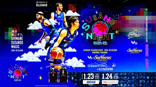 島根スサノオマジックは、りそなグループ B.LEAGUE 2024-25 SEASONの対象6試合において、バンダイナムコエンターテインメントとのコラボレーションイベント 「SUSANOO NIGHT 2024-25(以降、スサノオナイト)」 を開催します。