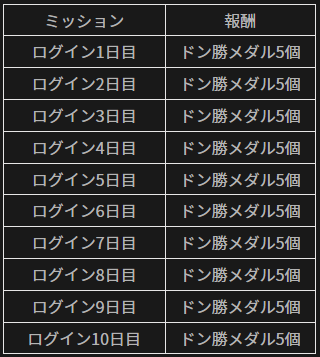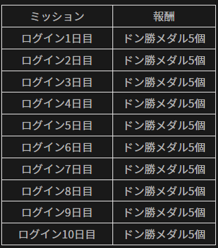 ■ミッション&報酬:全ミッションクリアで合計ドン勝メダル50個
