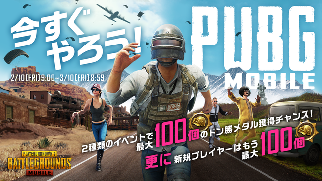 そして、『PUBG MOBILE』を新しく始めたプレイヤーの皆さまには更に最大100個のドン勝メダル獲得チャンス!!