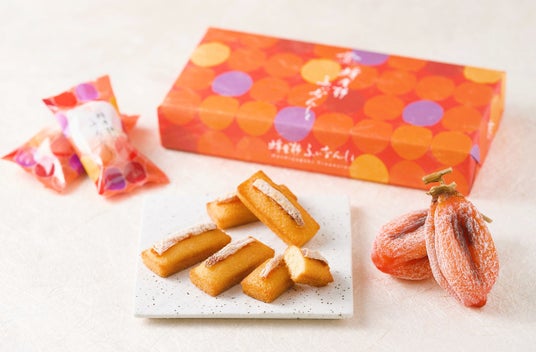 バターの濃厚な風味と香ばしいアーモンドプードルの香りが広がるふぃなんしぇ。生地の食感をより良くするため改良しました。カットした蜂屋柿の果肉をトッピングした、贅沢で特別感のあるお菓子に仕上げました。