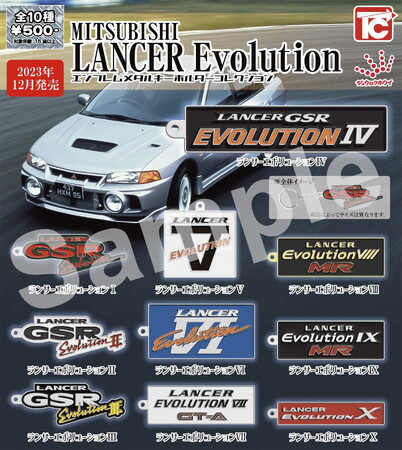 株式会社ジュウロクホウイ(本社:東京都千代田区、代表取締役:赤松 武雄)は、三菱自動車工業株式会社監修のもと、歴代ランサーエボリューションのカーエンブレム、㏚ロゴを重厚なメタル素材で精巧に再現したキーホルダ―を、2023年12月から順次、一般小売店カプセルトイ売場(通称:ガチャガチャ)にて発売予定。