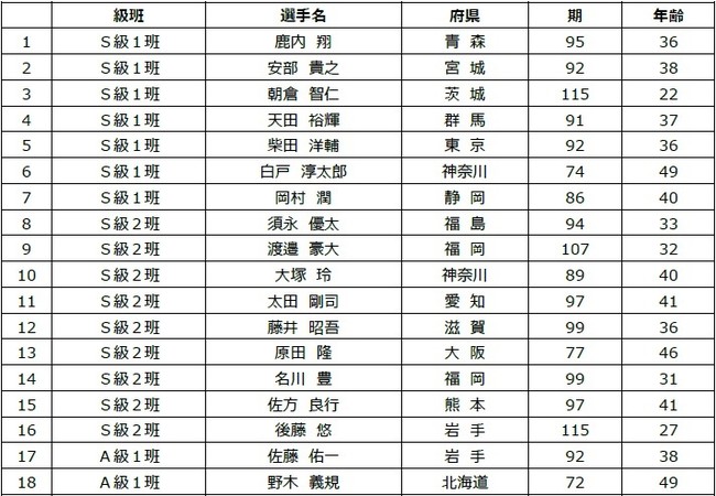 ※直前のレースなどにより、欠場及び出場選手が変更する場合がございます。