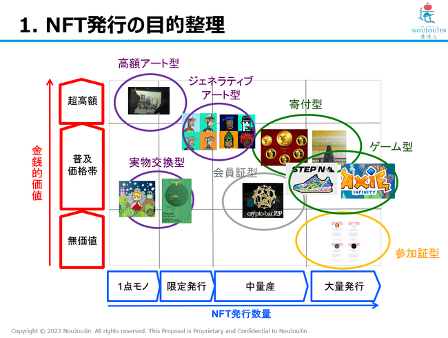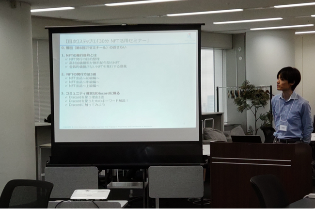 「30分 NFT活用セミナー」では、NFTの発行目的と方法、Discordを活用したコミュニティ運営について紹介しました。特に、NFTの発行目的を明確にし、高付加価値型から無料配布型に至るまでのNFT発行手法を動画とともにに解説し、金銭的価値のないNFT発行の意義を探求しています。