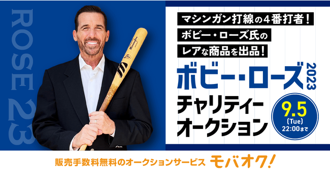 株式会社モバオク(本社:東京都渋谷区、代表取締役社長:生田目 知之、以下モバオク)が運営するオークションサービス「モバオク」にて、「ボビー・ローズ 2023 チャリティーオークション」を2023年8月28日(月)から開催します。
