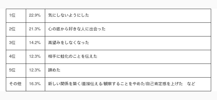 蛙化現象の治し方の中で1番選ばれていたのは『気にしないようにした』でした。