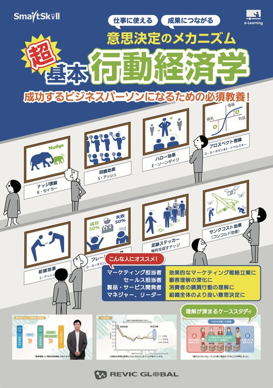 株式会社レビックグローバル(本社:東京都港区、代表取締役社長:柏木 理、以下「レビックグローバル」)は、学習管理システム(LMS)とタレントマネジメントシステム、教育コンテンツを活用し、企業の組織力向上を支援するソリューションを提供しています。このたび、2024年8月19日にeラーニング教材「仕事に使える!成果につながる!超基本 行動経済学」をリリースいたしましたので、お知らせいたします。