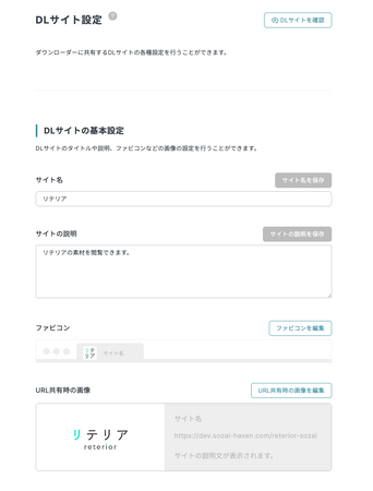 DLサイトの基本設定では、サイトのタイトルや説明、ファビコン、URL共有時の画像を設定することができます。