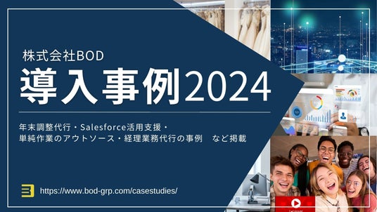 アウトソーシングサービスを提供する株式会社BOD(本社:東京都豊島区南池袋 2 丁目 49 番 7 号、代表取締役:田中大善、以下 BOD)は2024年9月17日、コーポレートサイト内に「導入事例2024」の資料を公開しました。詳細は https://www.bod-grp.com/casestudies/ にてご確認いただけます。