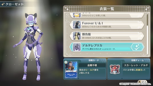 ダイヤが愛用する「スカーレット・デルタ」のレプリカスーツが着用できるようになるDLCです。本作オリジナルのヨハネ専用カラーのスーツです。
