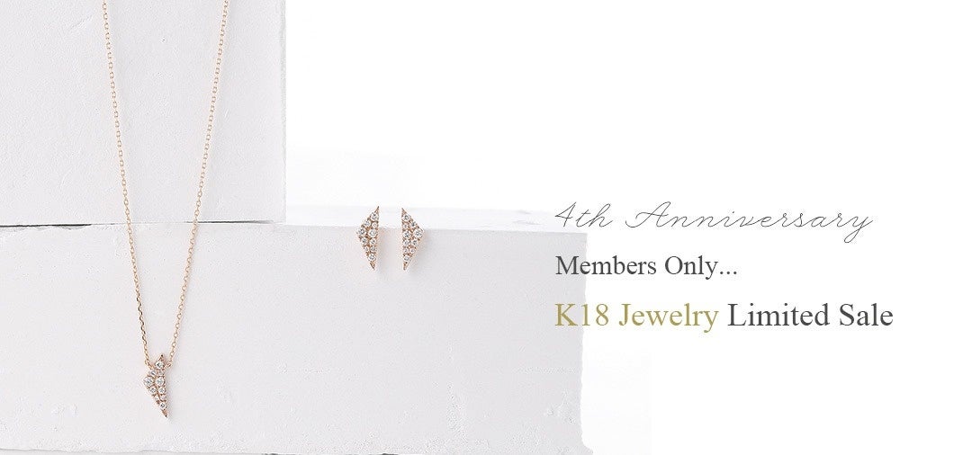 第2週目は会員限定、K18ジュエリーセール!金相場の高騰により手が届きづらくなりつつあるK18ジュエリーですが、「4周年記念祭」限定で超特価でお届けします。