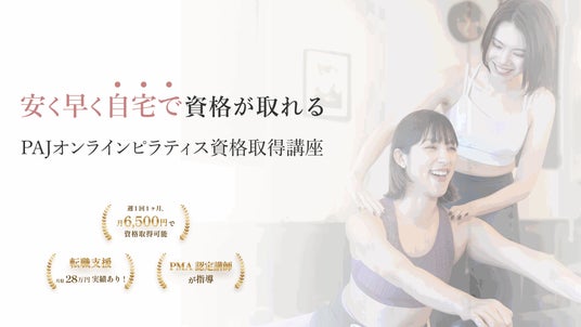 指導初心者でも即活躍できるピラティスインストラクターオンライン養成講座。早く!安く!自宅で!資格が取れるオンラインピラティス資格取得スクールを7/25より開講。