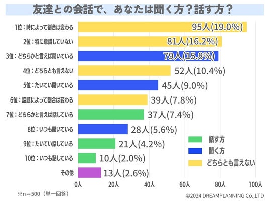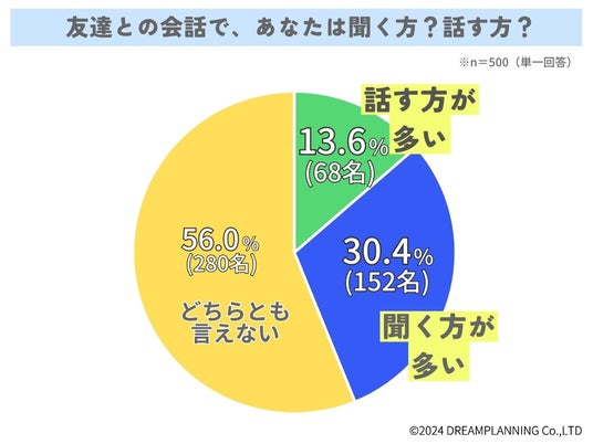 友達との会話で、あなたは聞く方?話す方?n=500(単一回答)