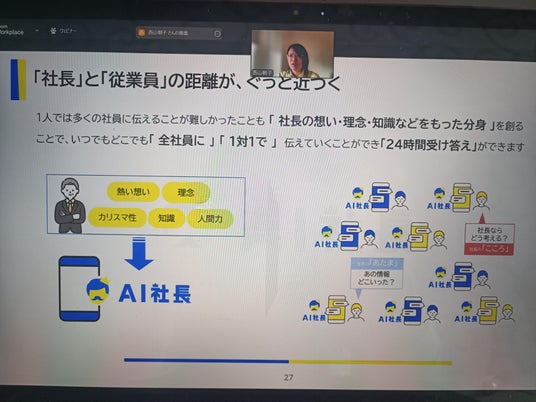 第2部では、株式会社THAの西山朝子代表取締役より外部のデータベースを参照して生成AIが回答する仕組み「RAG」を応用し、社長の知識や性格、社内ナレッジなどを踏まえ回答する自社サービス「AI社長」の詳細や、住宅業界での活用事例を解説していただきました。