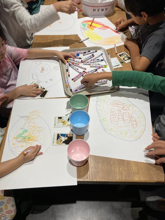 自分で作った餃子の絵を描いていきます 優秀賞は大阪王将店舗に飾られるかも