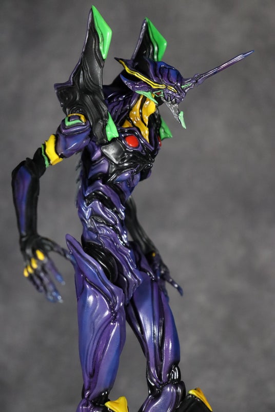 初号機よりも少し青黒いボディは、パープルとブルーによるグラデーションにて表現。