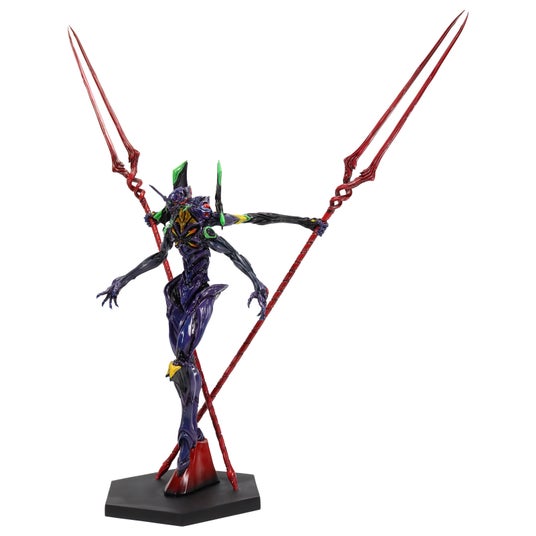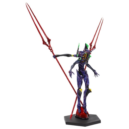 今作は、「ヱヴァンゲリヲン 新劇場版:Q」において、セントラルドグマ内で2本の槍を引き抜いた後にフォースインパクトを発動させる、印象的なシーンを基に造形され、シリーズ最大の全高約47cmにもおよぶ大迫力サイズで立体化。