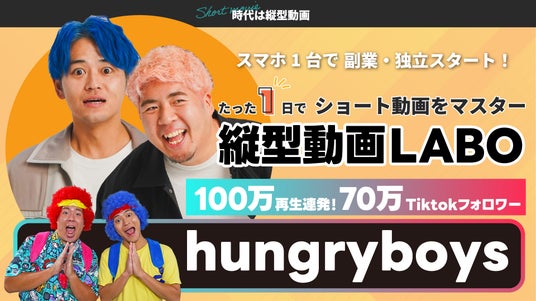ファンテック株式会社(本社:東京都港区、代表取締役社長:園部 宗徳)が運営する縦型動画編集スクール『縦型動画LABO』に、TikTokフォロワー70万人を誇る人気TikToker、hungryboysが講師として登壇することが決定いたしました。