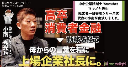 記事タイトル:Youtube番組「経営者一日密着シリーズ」に代表の小南が出演しました。