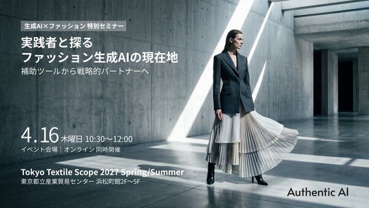 ファッションと生成AIをはじめとした最新テクノロジーを掛け合わせたソリューションを展開する株式会社オーセンティックAI(本社:東京都港区、代表取締役:上田 徹、以下オーセンティックAI社)は、2026年4月15日(水)~17日(金)に開催されるファッション展示会「第3回 Tokyo Textile Scope」の 2日目、4月16日(木)に特別セミナーを実施することをお知らせします。
