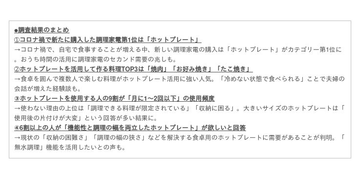 ・調査タイトル:ホットプレートの使用状況に関する調査