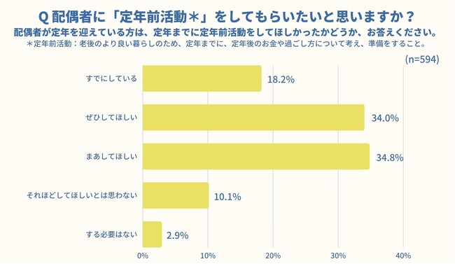 配偶者に定年前活動をしてほしい女性は、約7割。