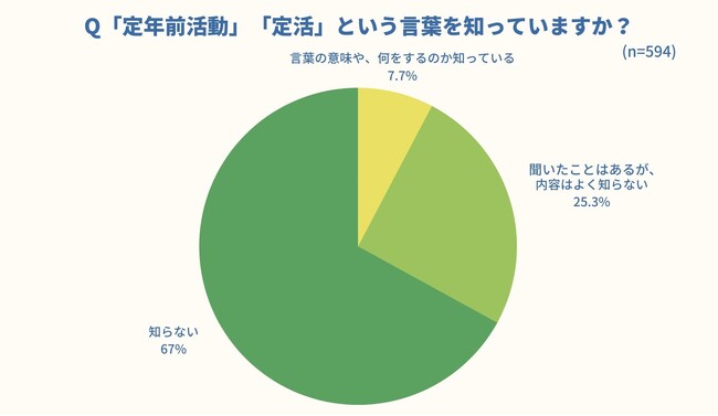「定年前活動」「定活」という言葉を「知らない」女性は、67%。