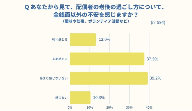 あなたから見て、配偶者の老後の過ごし方について、金銭面以外の不安を感じますか?(趣味や仕事、ボランティア活動など)