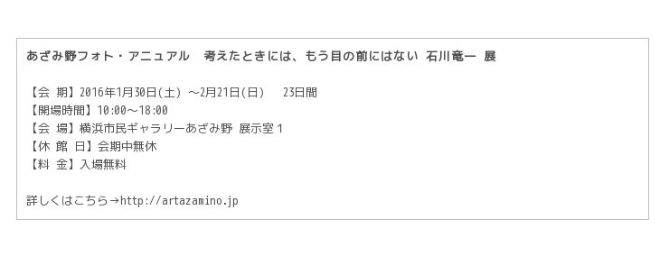 あざみ野フォト・アニュアル「考えたときには、もう目の前にはない 石川竜一展」