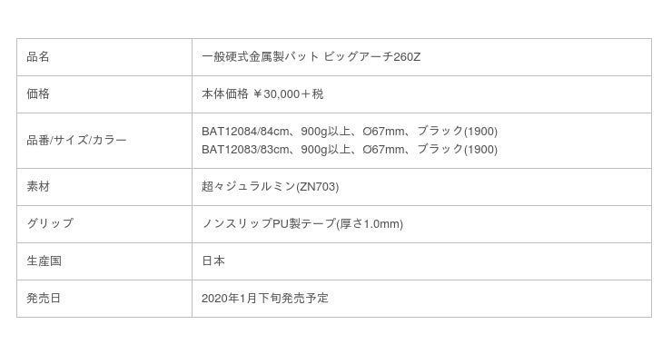 「ベースボールを科学する。」ゼット株式会社(本社/大阪市天王寺区、代表取締役社長/渡辺裕之)は、しっかり弾く打球感と打球音も爽快なワイドミートエリア設計モデルの一般硬式金属製バット【ビッグアーチ260Z】を発売します。