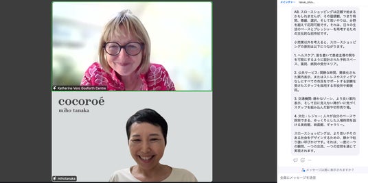 「日本人高齢者をイギリスで支援した経験はありますか?」という問いに対し、キャサリンさんは「スローショッピングの大事な考えのひとつは、サポートが必要だと自分から言わなくていいということです。」と話しました。他の方と同じように、日本から来た高齢の方もご家族と一緒に買い物を楽しみ、座って休みながら温かく迎えられていたこともあると当時の様子を振り返りました。