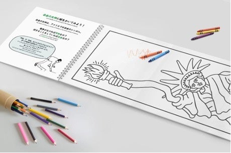 - 子どもたちがヘリングと同じように未来に「平和をえがく」ことができるきっかけになるよう、全ページを画用紙と同じ素材で作成しました。色鉛筆やペンなどで自由に「自分で描く」ことができます。