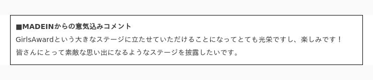 本出演決定に合わせて、MADEINから意気込みコメントが到着しています。