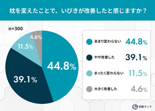 - 枕を変えた人の約4割(43.7%)が「いびきが改善した」と回答