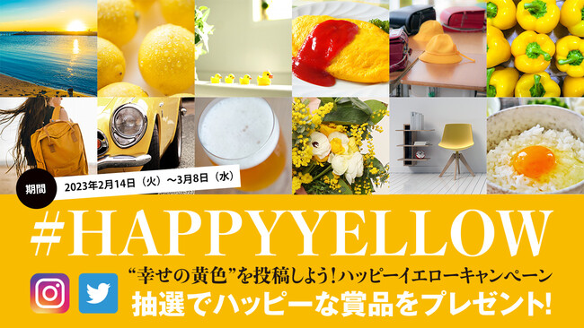 みなさんの気持ちを“幸せの黄色”に彩る「国際女性デー|ハッピーイエローキャンペーン2023」を2月14日から3月8日まで開催。「幸せを感じる黄色いアイテム」を撮影し、「#happyyellow」と「#happywoman」のハッシュタグをつけてInstagramかTwitterに投稿してください。抽選でハッピーな賞品をプレゼントします。