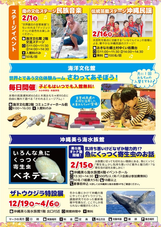 ~海洋博公園の沖縄美ら海水族館・熱帯ドリームセンター・おきなわ郷土村・オキちゃん劇場でのイベント情報等を掲載しております。~