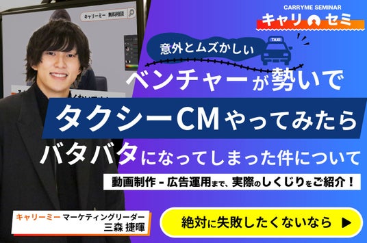 本ウェビナーは、キャリーミーがタクシーCMの制作・配信で経験した失敗を大公開!
