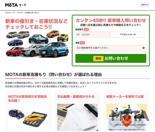 <MOTAが運営する「MOTA新車見積もり」>