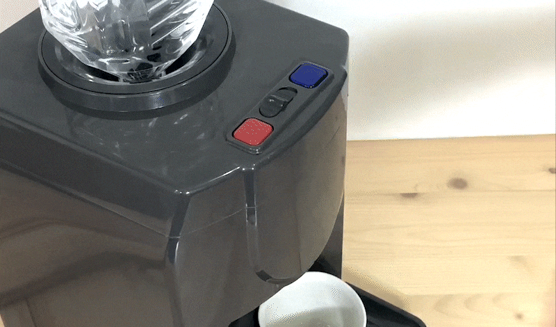 ペットボトルをセット後、冷水と温水が適正温度になると本体正面の温度ランプが切り替わります。